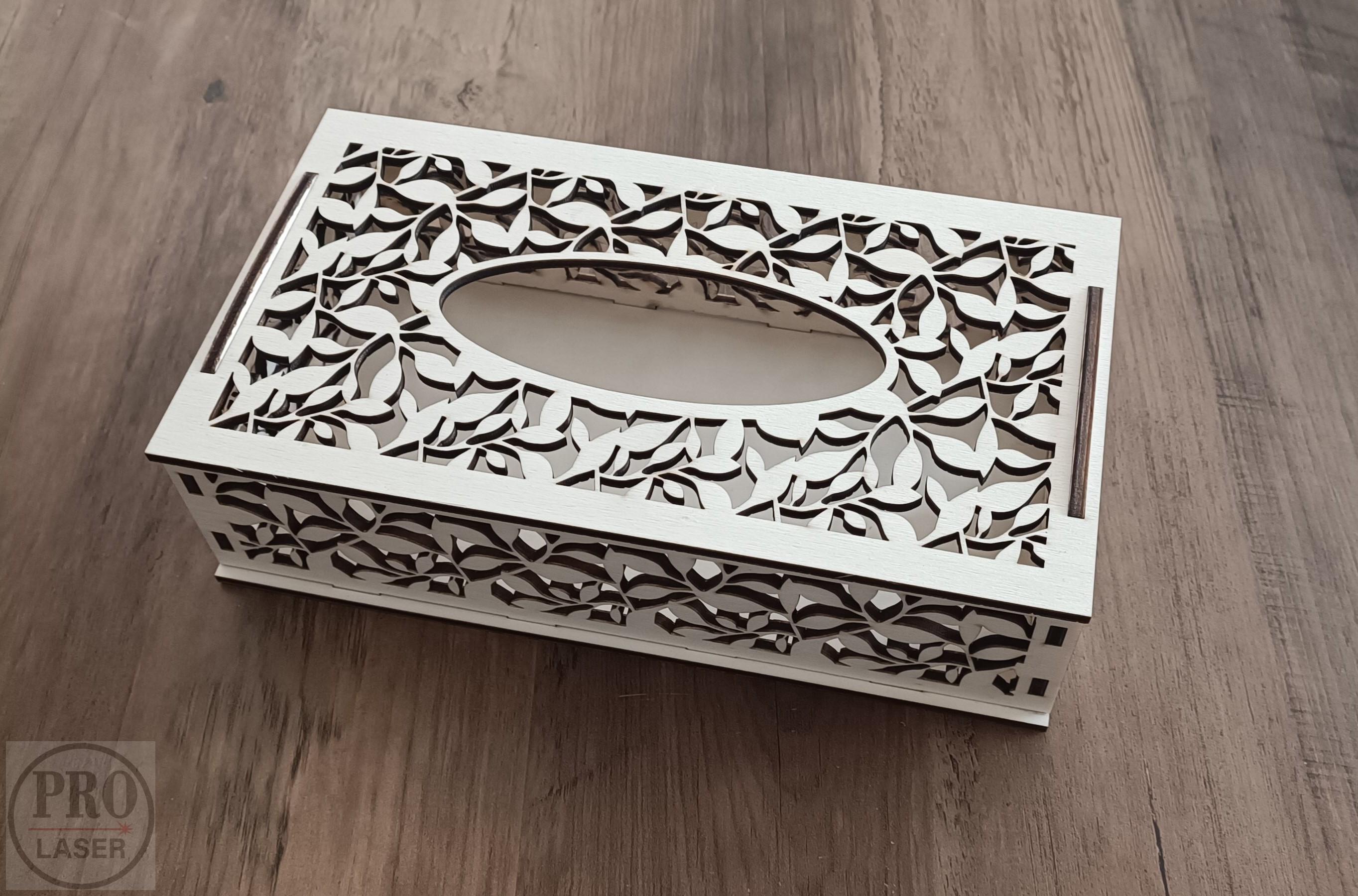 Dřevěná krabička na papírové kapesníky. Krabička je vyřezávaná z topolové překližky síly 4mm, nebo HDF 3mm, což zaručuje její pevnost. Na výběr můžete volit z několika odstínů lazury, nebo ji nechat jen tak jak je, z přírodní překližky bez povrchové úpravy. Vnitřní rozměr 235 x 125mm, výška 7cm. celý popis