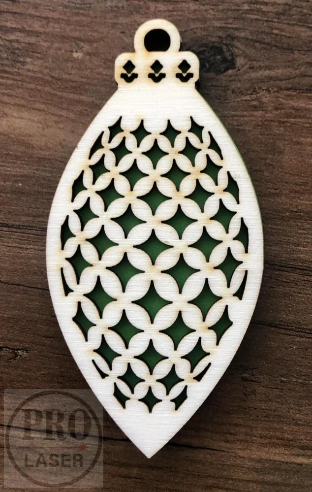 Ozdoba je ručně lepena ze dvou kusů topolové překližky o síle 3mm, mezi které je vlepena barevná fólie.