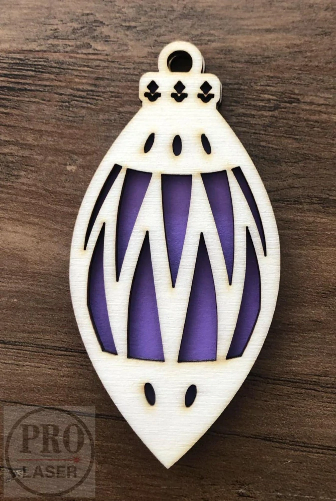 Ozdoba je ručně lepena ze dvou kusů topolové překližky o síle 3mm, mezi které je vlepena barevná fólie.