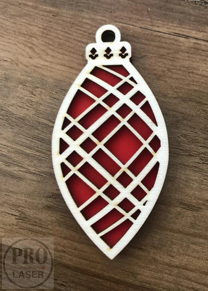 Ozdoba je ručně lepena ze dvou kusů topolové překližky o síle 3mm, mezi které je vlepena barevná fólie.
