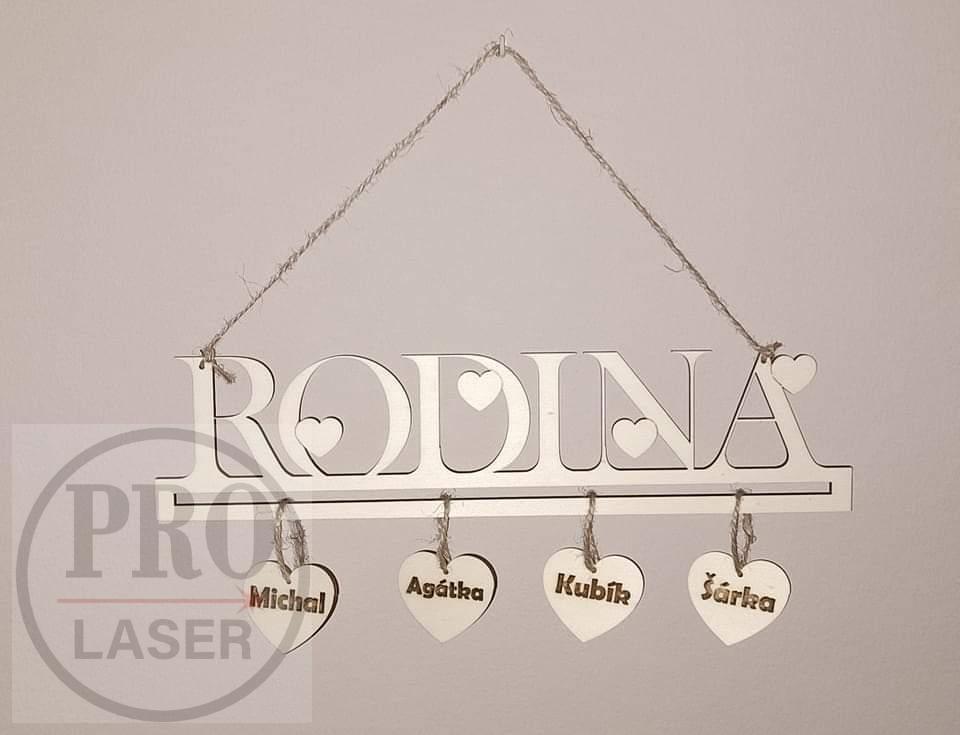 - Dřevěný nápis RODINA + srdce