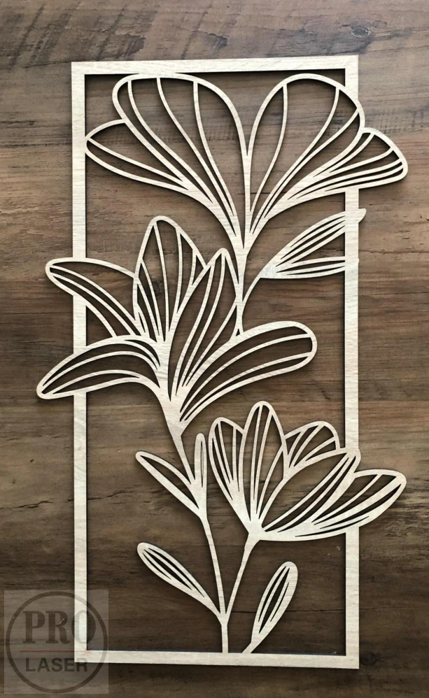 Dřevěný obraz květina v rámečku určený k přilepení na stěnu pomocí oboustranné lepící pásky nebo k zavěšení.