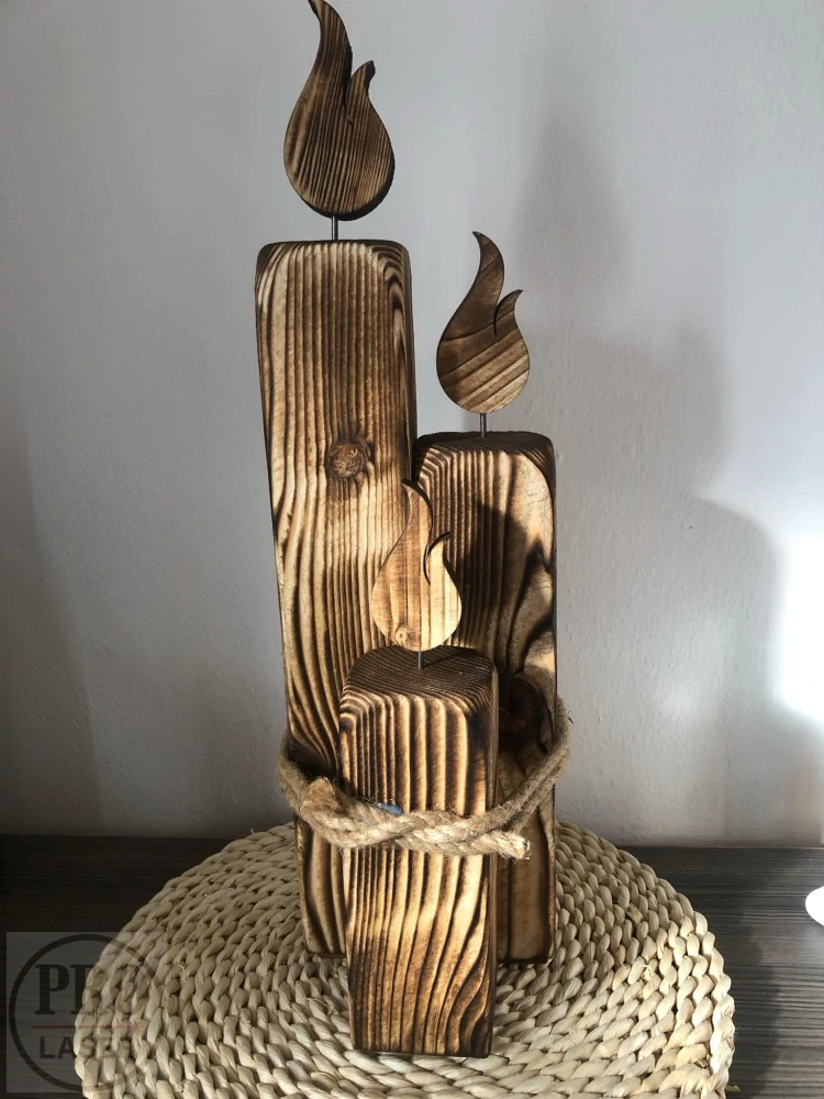 Délka dřevěných svíček včtmě plamínku je 52, 40 a 29cm.