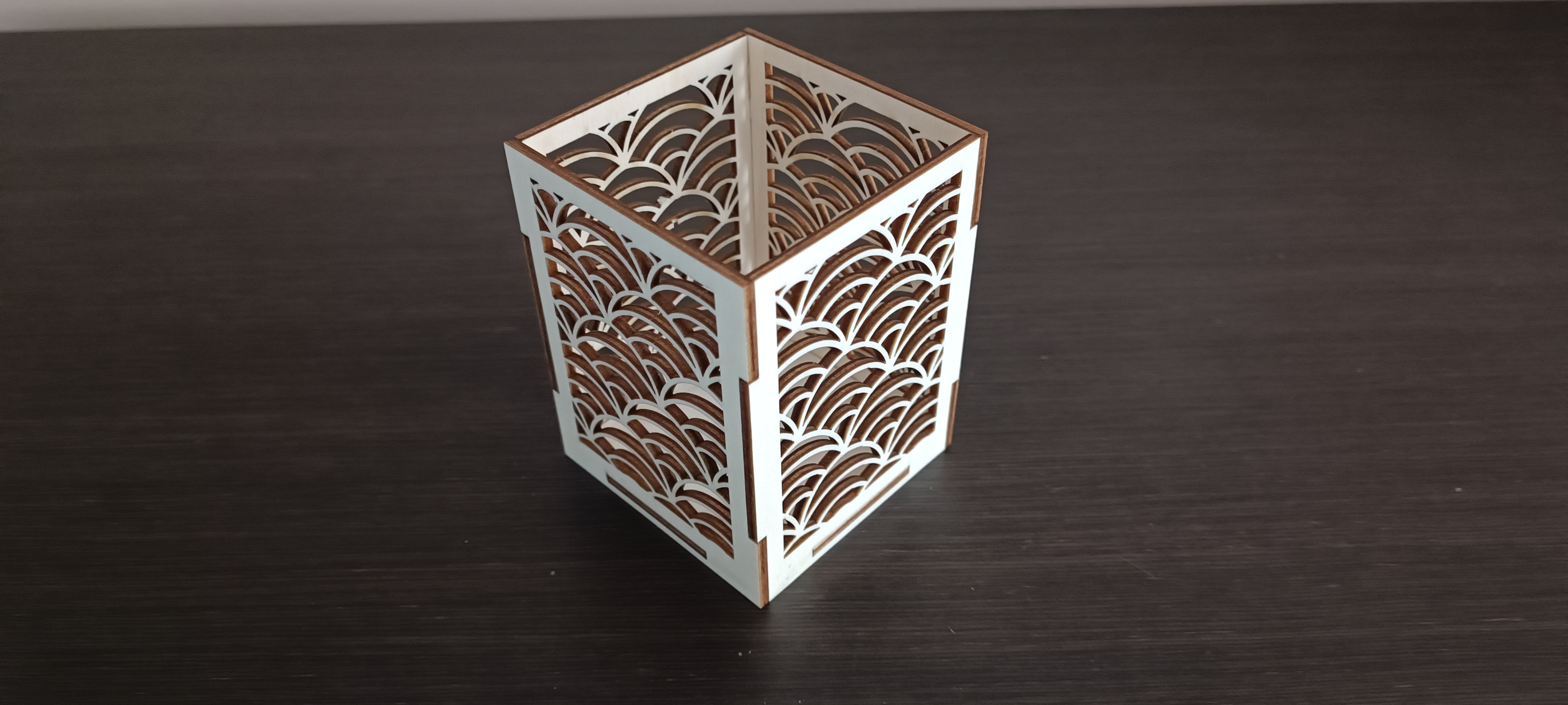 Svícen určený pro čajové svíčky, krabičku lze využít i jako stojánek na tužky/ubrousky a jiné.